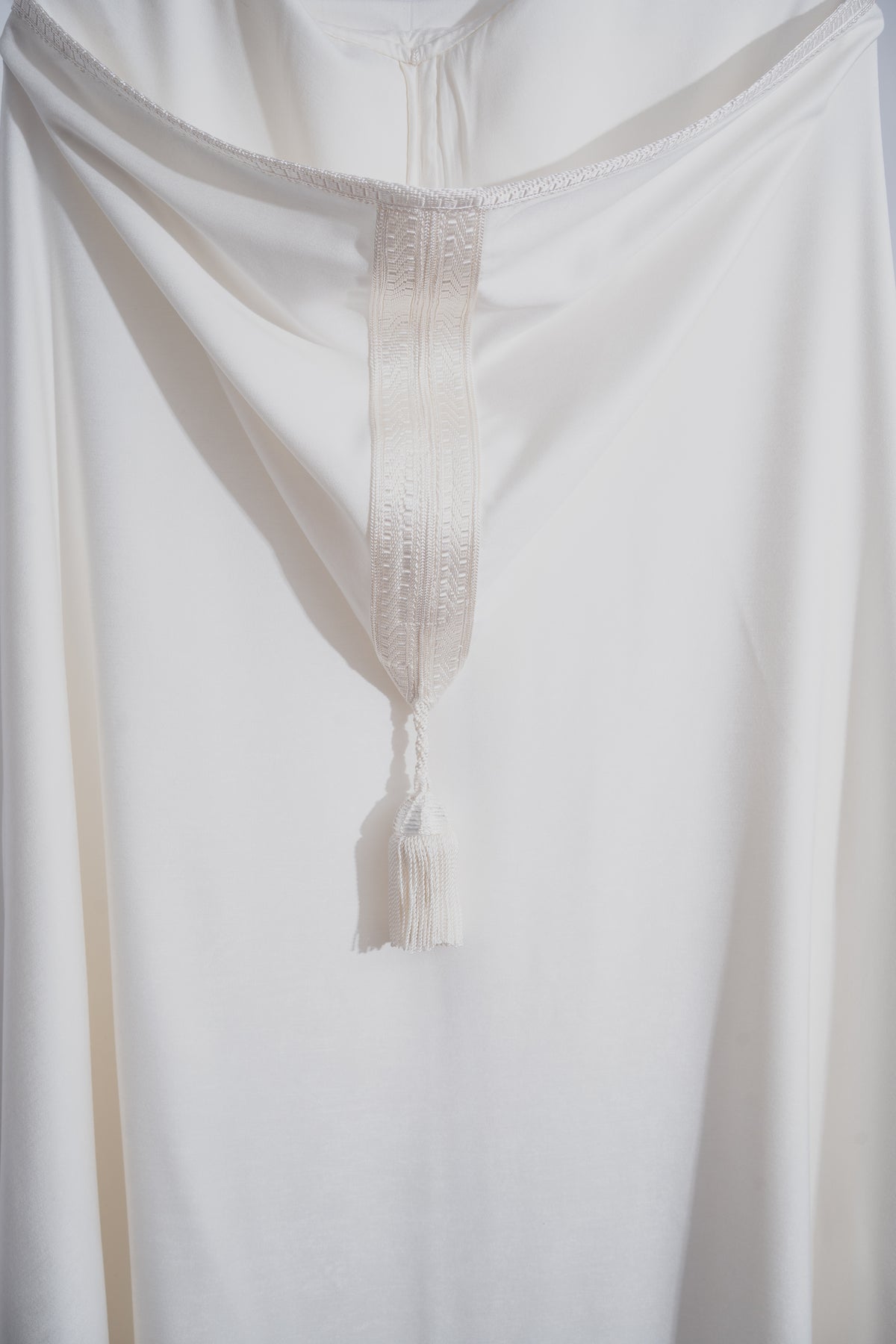 Its defining feature is the pasta-style sfifa, meticulously executed by skilled artisans. Free of beads or embellishments, the sfifa’s clean, rhythmic pattern adds quiet character and depth, proving that true luxury lies in restraint and balance.